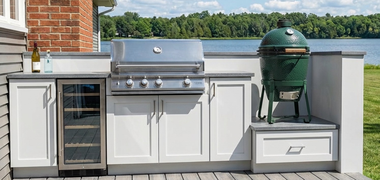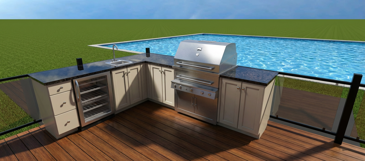 We have all standard cabinets sizes and selections available. We can custom design cabinets to meet your outdoor entertaining needs.
