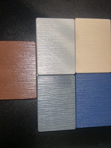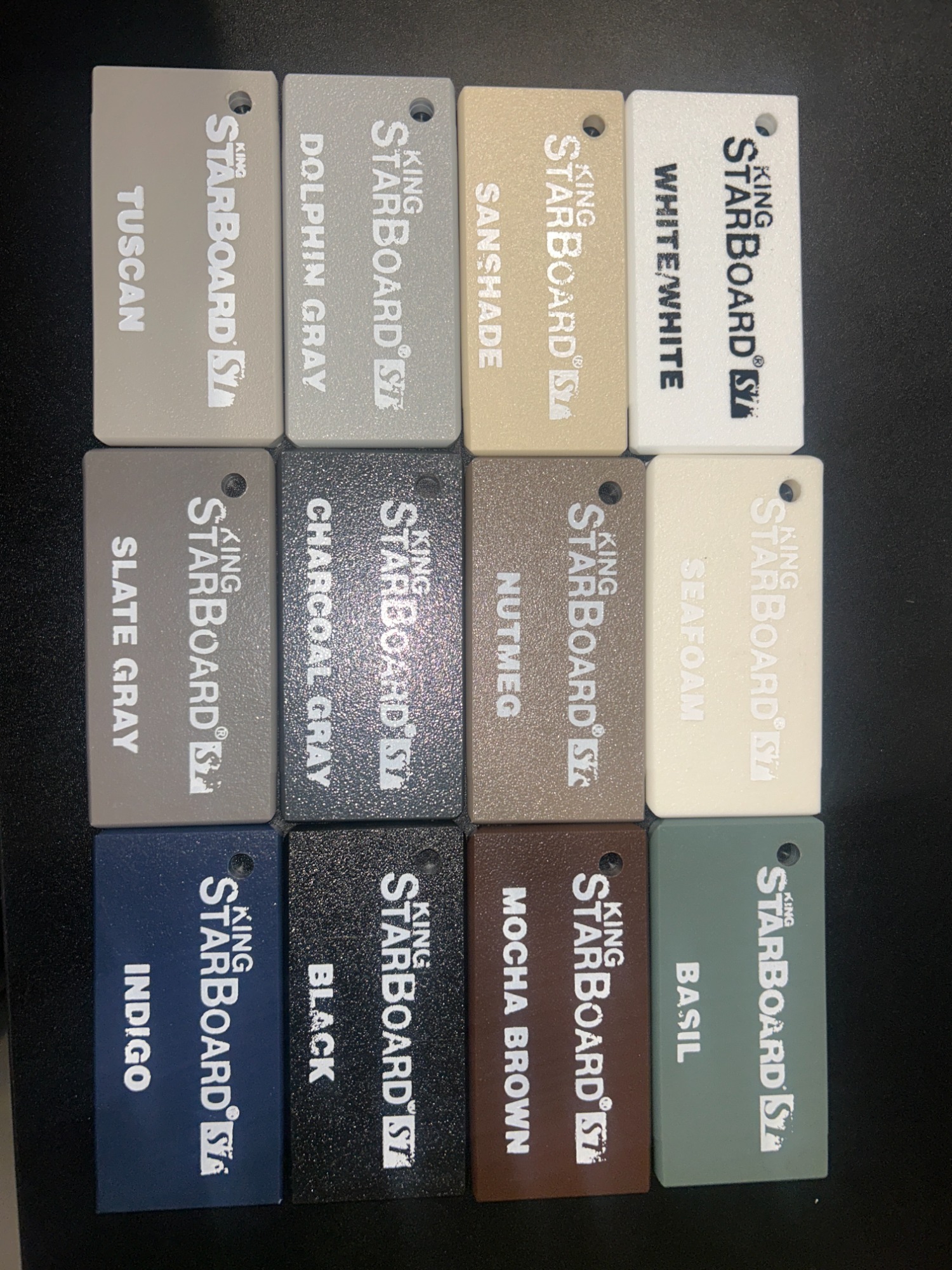 There are 12 standard colors and 5 wood grain colors. The standard doors are the Flat Panel or Beaded doors. However we can create most any door style.