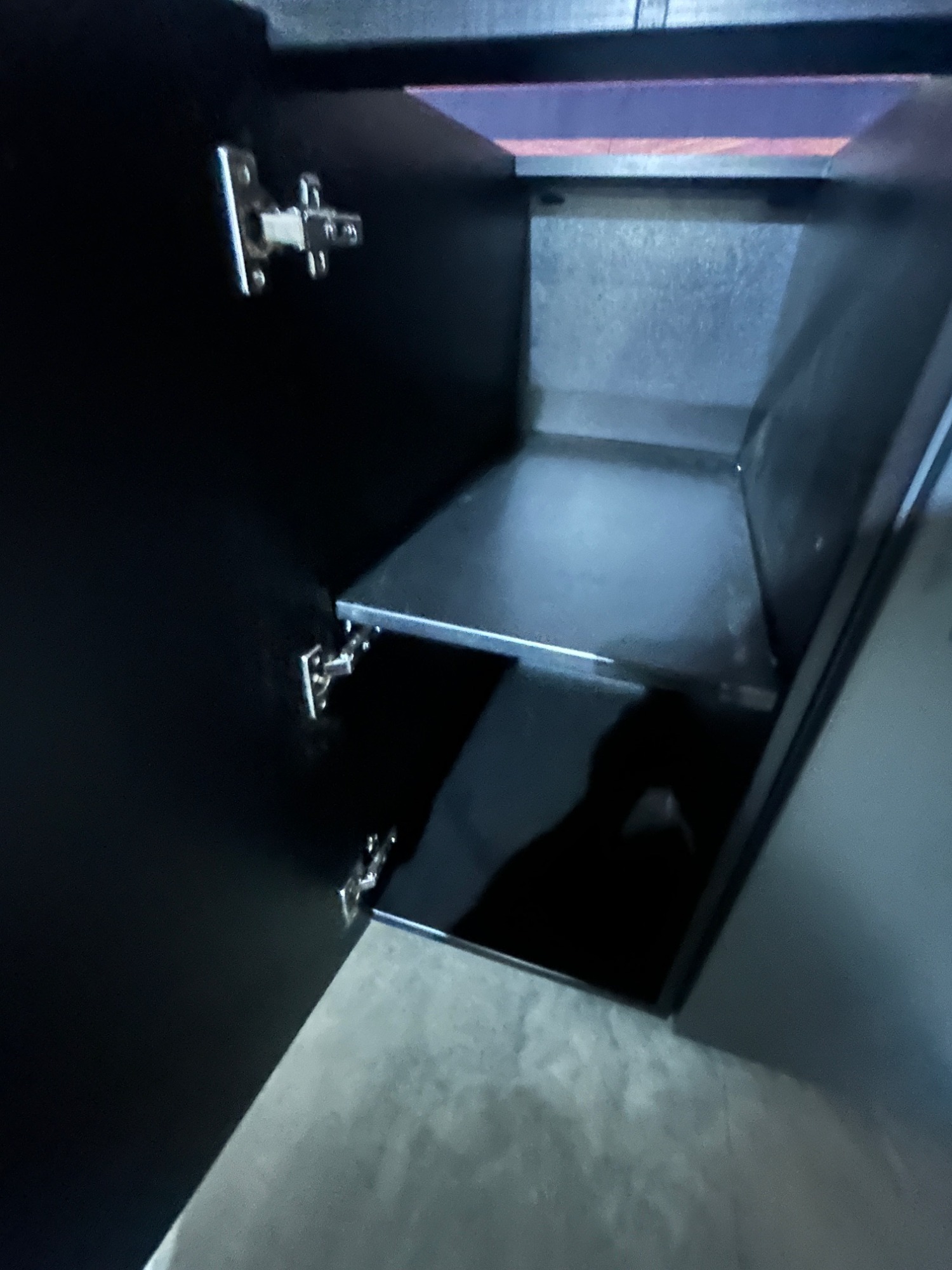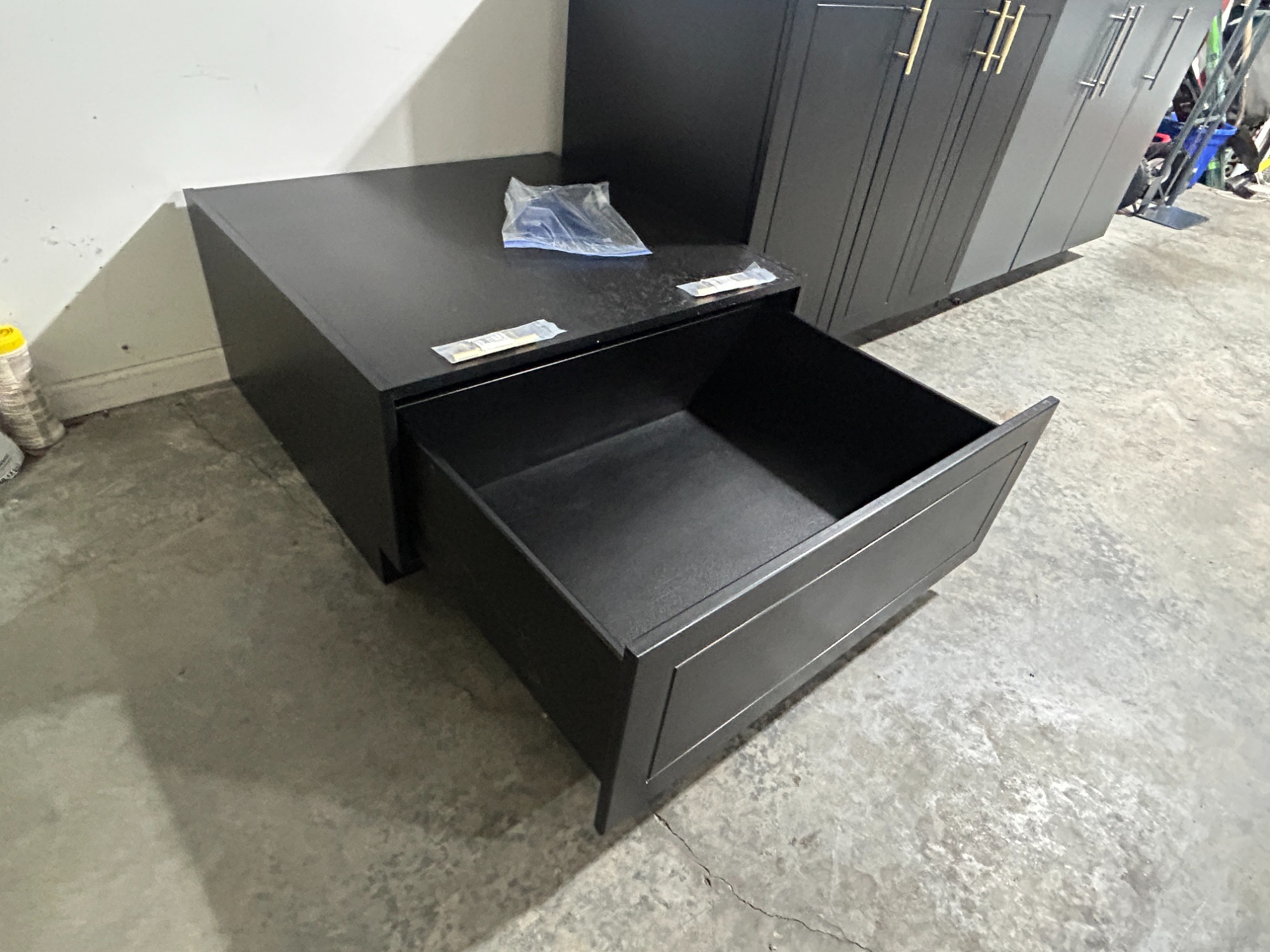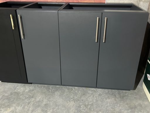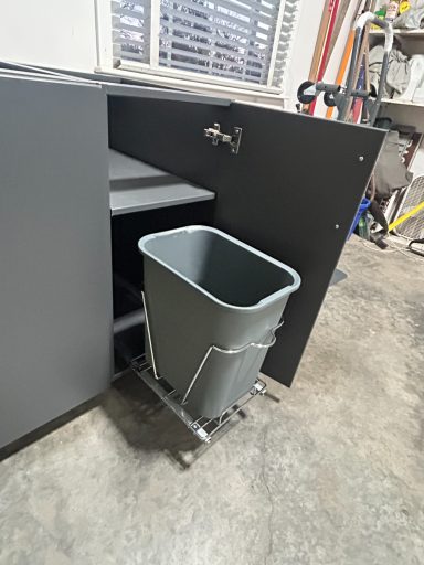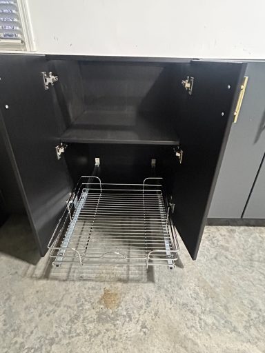The standard cabinet has tall doors with soft close hinges, adjustable feet, and 1-adjustable shelf. Cabinets can easily have stainless steel storage trays, shelves, and trash cans added.